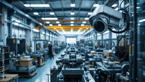 Fototapeta premium Factory Security Camera Industrial Surveillance Manufacturing CCTV