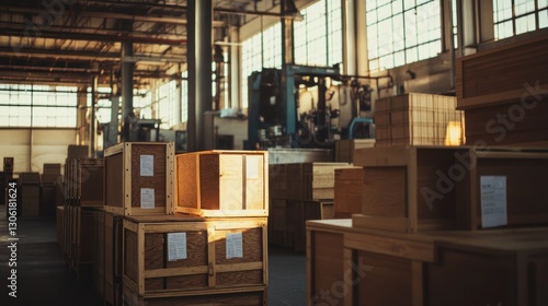© NAIMAH, Naklejka premium Factory Sunlight Wooden Crate Warehouse Storage Shipping