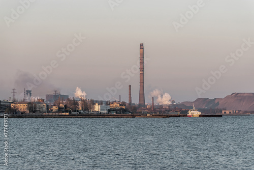 Fototapeta premium Factory with air pollution smoke from chimneys, environmental problems....