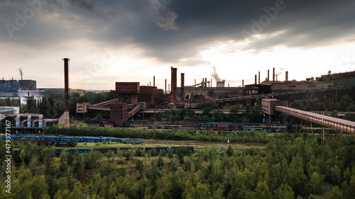 Fototapeta premium factory with smoking chimneys dark clouds