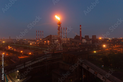 Obraz premium factory worker lights at night