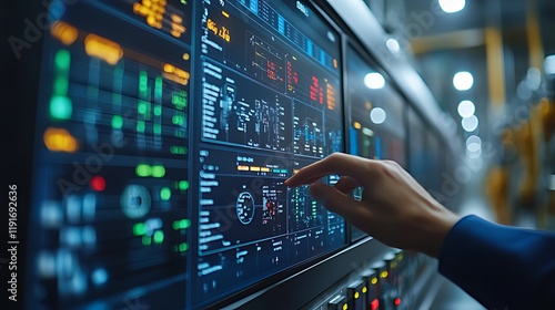 Obraz premium Factory worker monitoring industrial process control screen