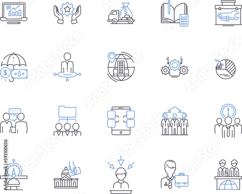 © michael broon, Fototapeta premium Factory workflow outline icons collection. Factories, Workflow, Production, Manufacturing, Process, Quality, Machines vector and illustration concept set. Automation, Output, Logistics linear signs
