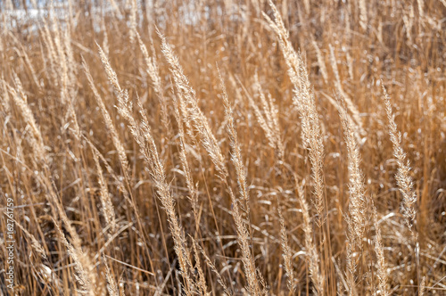 Fototapeta premium Fade grass ears on blurred background