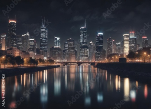 Naklejka premium Faded film photo with light leak effect showing cityscape at night, cityscape, vintage