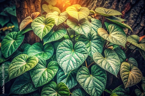 © Adisorn, Naklejka premium Faded hues of a rebellious Larger-leaved Wild Yam dominate this 4k poster, an aged photograph featuring a vintage botany specimen in muted tones.