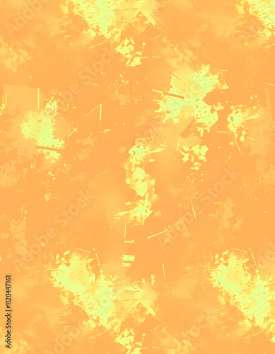 © Sergey, Fototapeta premium Faded peach fuzz glitch geo washed effect seamless pattern. Orange dye grungy blotched distress abstract background texture repeat, pop art