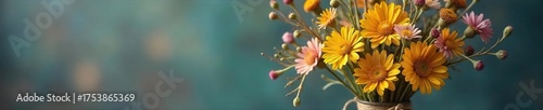 © Benjamas, Fototapeta premium Faded Wildflower Bouquet in Antique Vase Rustic Heirloom Evoking Summer Memories