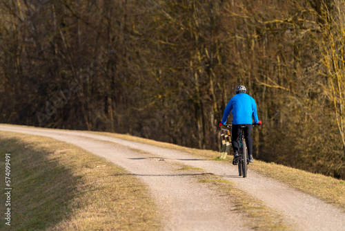 © Harald Schindler, Fototapeta premium Fahrradfahrer an der Donau auf dem Damm