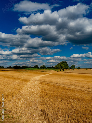 © focus finder, Fototapeta premium Fahrspuren auf einem Stoppelfeld