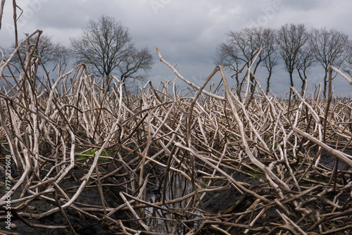 © Matauw, Fototapeta premium Failed potato harvest: due to heavy rain, the crop could not be harvested, the potatoes rotted in the ground