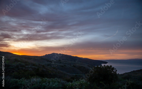 © kellyvandellen, Fototapeta premium Faint Light at End of Sunset Over Prisoners Harbor