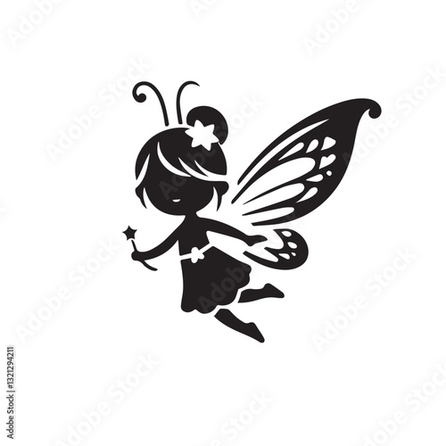 Fototapeta premium Fairy Silhouette vector silhouette. Cute fairy logo, icon design.