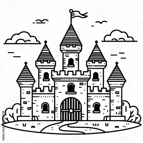 © BERMED, Fototapeta premium Fairy Tale Castle Coloring Page with Whimsical Design