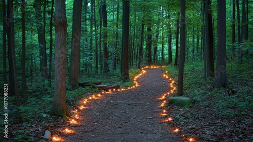 Obraz premium Fairy tale forest with gentle lights illuminating path