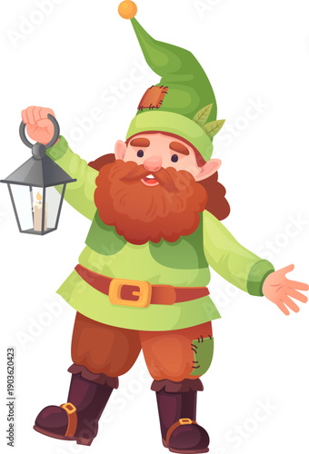 Obraz premium Fairytale dwarf in green costume. Cartoon old man
