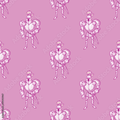 Obraz premium Fairytale knight seamless pattern. Cartoon style pattern design.