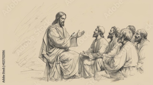 Fototapeta premium Faith and Growth: Jesus Teaching the Parable of the Good Seed, Biblical...