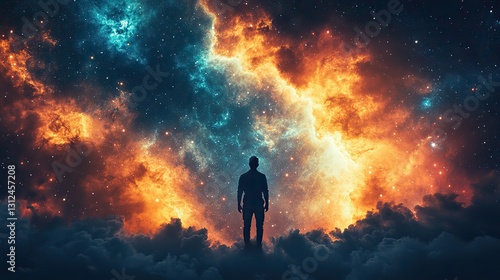 © Claudine, Fototapeta premium faith heavenly background man looking at the heavens in the background