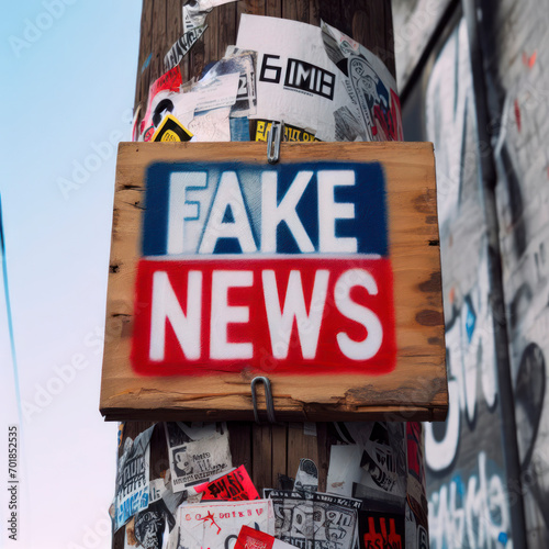 © Igor, Obraz premium FAKE NEWS board on street. ai generative