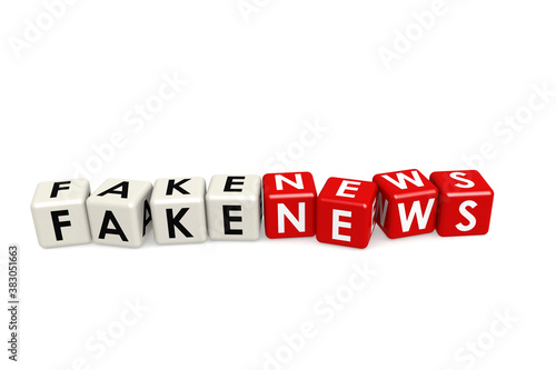 © tang90246, Fototapeta premium Fake news cube crossword on white background