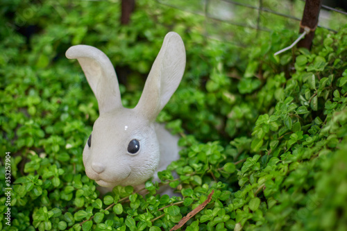Fototapeta premium Fake plastic rabbit covered by a plant