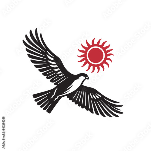 Obraz premium Falcon bird and sun. Vector old emblem. Red and black