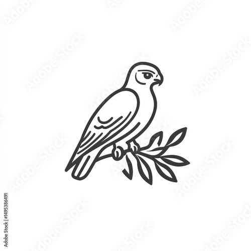 © Teruss, Obraz premium Falcon perched on branch, nature background, wildlife illustration, logo design