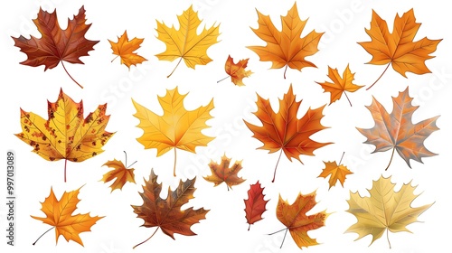 © Togrul, Fototapeta premium Fall and autumn leaves isolated on a white background collection Aİ Generative