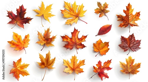 © Togrul, Fototapeta premium Fall and autumn leaves isolated on a white background collection Aİ Generative