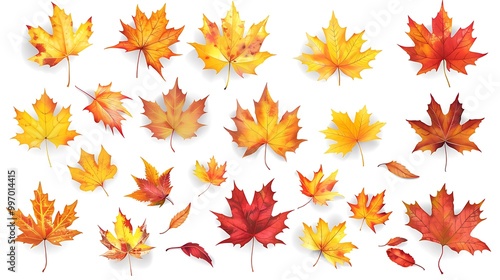 © Togrul, Fototapeta premium Fall and autumn leaves isolated on a white background collection Aİ Generative