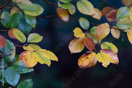 Obraz premium Fall colored leaves in forest
