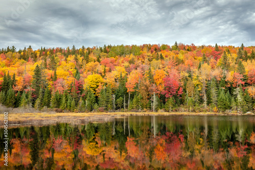 © peteleclerc, Fototapeta premium Fall colors on the forested mountains with reflection at the lake