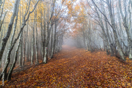Fototapeta premium Fall Foliage into Parco Nazionale delle Foreste Casentinesi, Italy