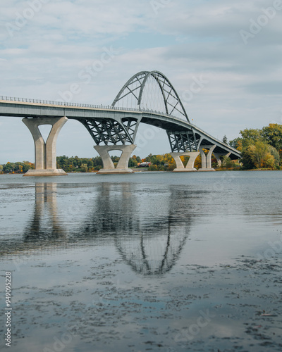 Fototapeta premium Fall Foliage Lake Champlain Bridge Upstate New York and Vermont in Autumn....