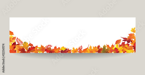 © Terriana, Fototapeta premium Fall leaf nature banner. Autumn leaves background. Season floral border