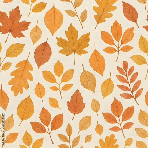 © Dexter, Obraz premium Fall leaves watercolor pattern