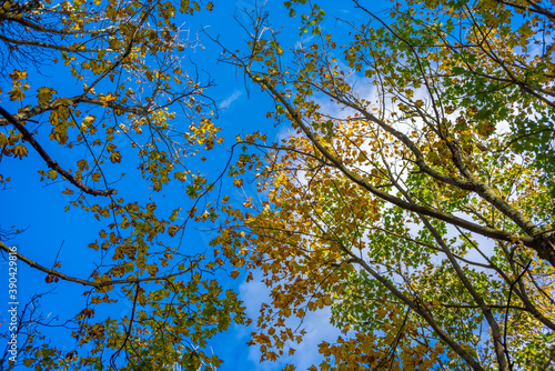 Obraz premium Fall leaves with blue sky