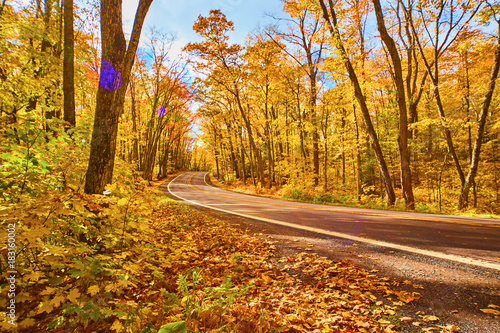 © Nicholas J. Klein, Obraz premium Fall Road in Michigan All Yellow Trees