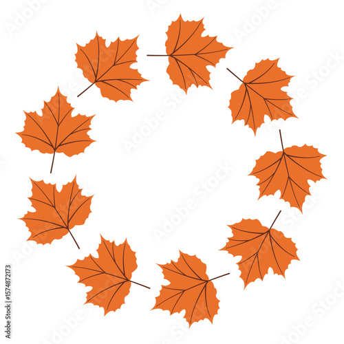 Fototapeta premium Fall season flat frame with orange leaves in modern vector style. Hand drawn set for banners, cards, social media