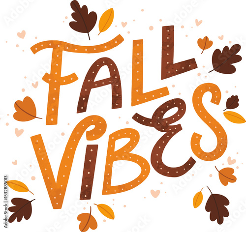 © vectorfusionart, Obraz premium Fall-themed typography is floating on transparent background in flat design with leaves hearts dots