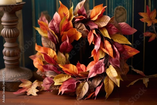 © Alfazet Chronicles, Obraz premium fall wreath with vibrant leaves on a table