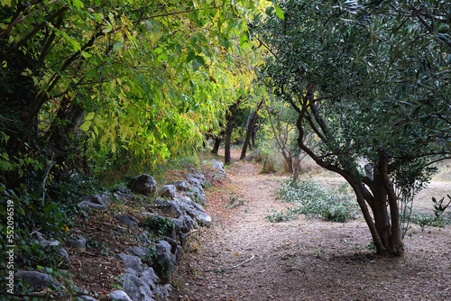 © jelena990, Fototapeta premium Fallen autumn leaves in the forest. Selective focus.
