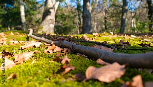 © Cas, Naklejka premium Fallen branches on mossy ground