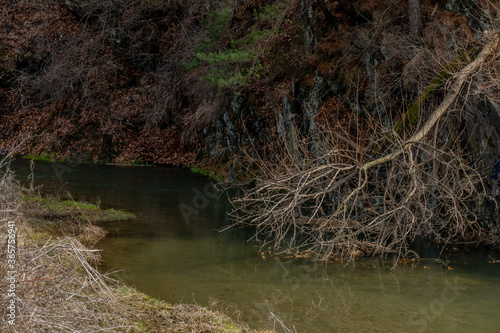 © aminkorea, Obraz premium Fallen dead tree on riverbank