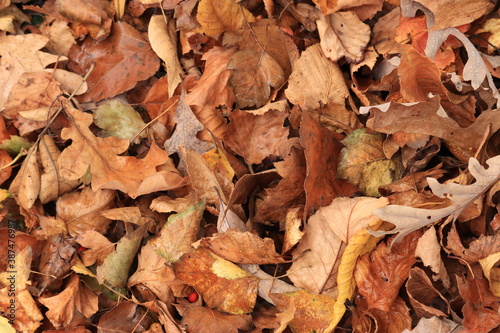 © Alex Kapov, Fototapeta premium Fallen leaves lie on the ground