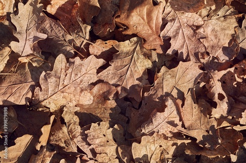 Fototapeta premium Fallen leaves on the ground in the woods