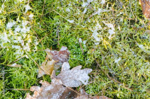Obraz premium fallen leaves under hoarfrost
