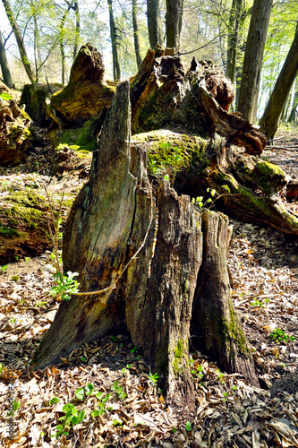 © tonysk, Obraz premium Fallen old tree in untouched forest