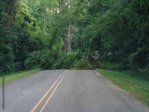 © Scott, Obraz premium Fallen tree blocking rural road after storm